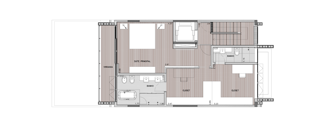 Conforto e privacidade em residências que variam de 433 a 468m², com 4 suítes, sendo uma delas master, elevador privativo e 4 vagas de garagem. Possuem ambientes amplos, como duas salas de estar, sala de jantar e terraços com e sem cobertura. Viver aqui, definitivamente, é sinônimo de exclusividade.